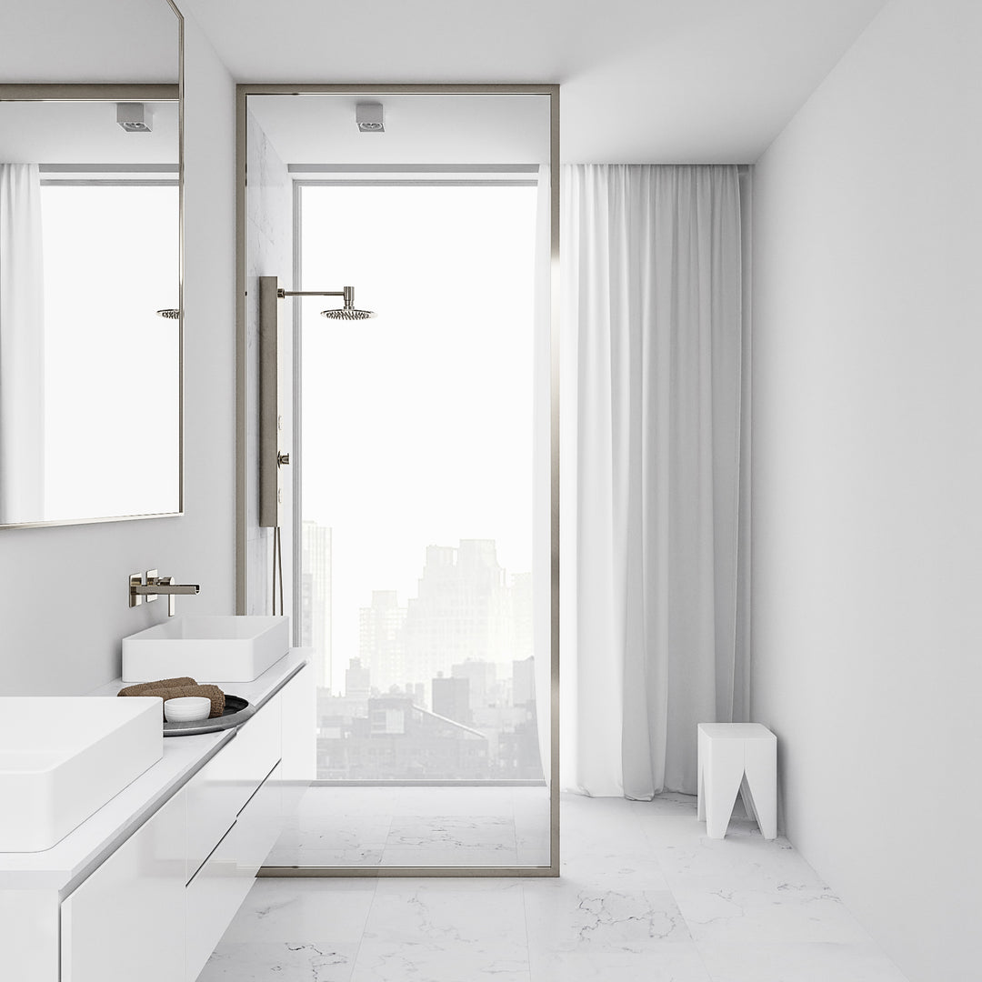 1000M is a luxury apartment complex located at 1000 South Michigan Avenue in Chicago, Illinois. It’s a 74-story and 832-foot-tall tower designed by Helmut Jahn and Kara Mann. All layouts are purposefully and modernly designed for maximum exposure to views and natural light. It contains premium plank flooring, sleek black hardware, luxury closets with warm wood shelving, soft-close cabinetry with undercabinet lighting, and luxe bathrooms with a panoramic view of Lake Michigan, Grant Park, and the Chicago skyline. 1000M contains VIGO custom shower systems and screens.