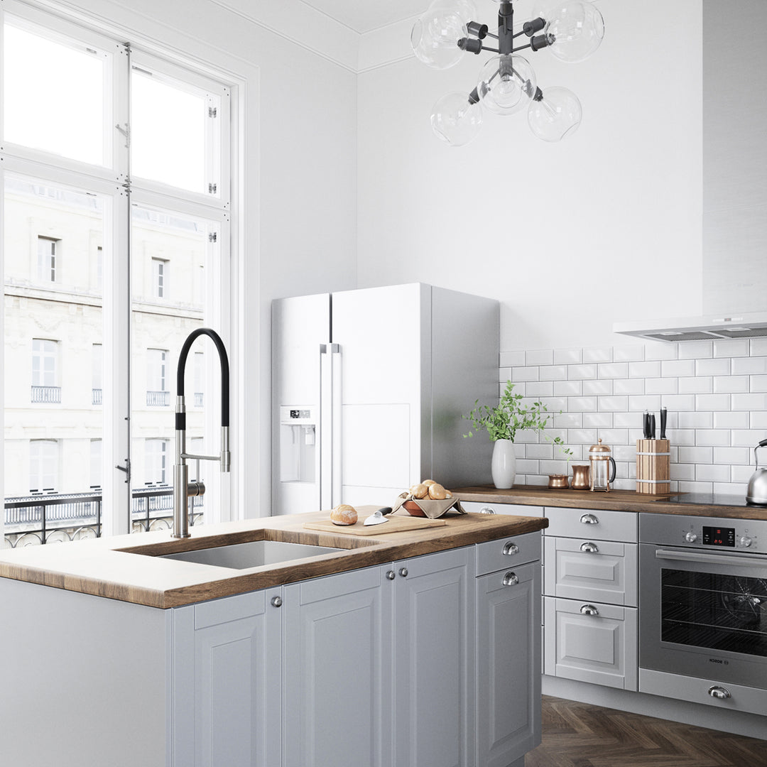 VG08012, VG08014 Shower Panel, VG01043 Bathroom Faucet, VG07000 Bathroom Drain, Custom Kitchen Sink, VG02026 Kitchen Faucet