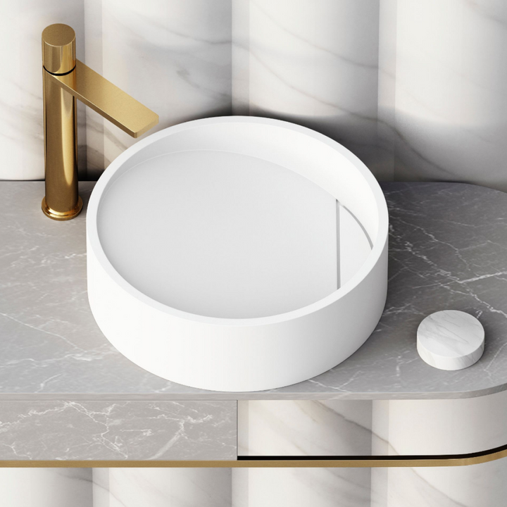 Matte Stone sinks are made of an exclusive smooth composite that is fade resistant and scratch-free. Buff with sandpaper to remove minor blemishes for a finish that lasts a lifetime.