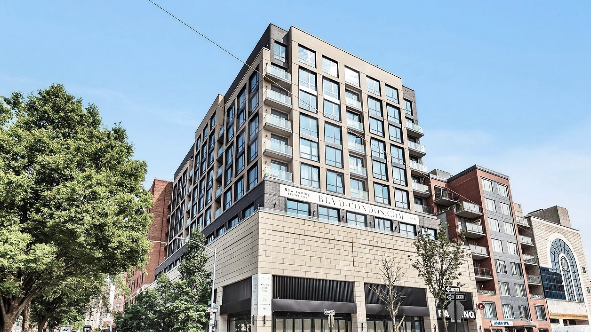 BLVD is a 10-story condominium building with 74 units by Jarmel Kizel Architects & Engineers located in Queens, New York. It has up to three exquisite floor plans. BLVD has lofty windows and extending terraces for optimal views with natural lighting. Residences include oak brushed flooring, white marble countertops, and Bosch slide in ranges. BLVD’s views extend to almost all of Queens for the most luxurious living experience. Some amenities include a roof deck, virtual doorman, a private conference room, and a courtyard. BLVD contains custom VIGO tub and shower doors.